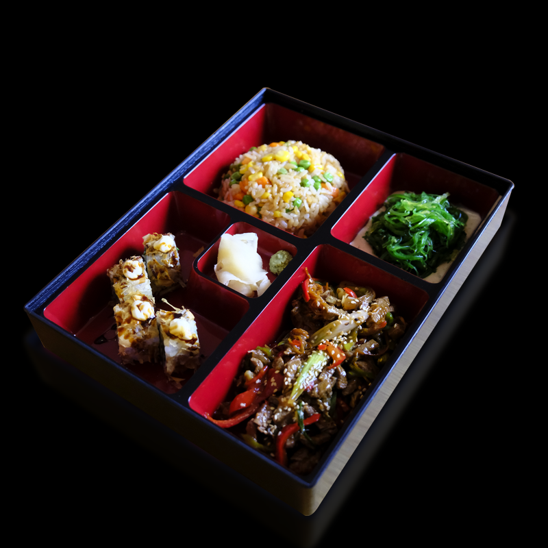 çin usulü dana, sebzeli pilav, wakame, maguro roll (4 adet)